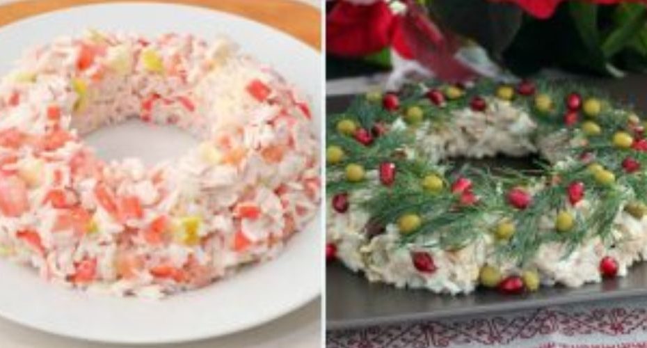 Lahodný salát “Vánoční věnec” bude krásnou ozdobou svátečního stolu