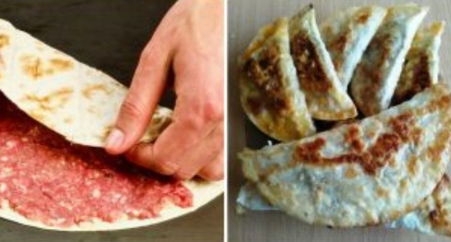 Ingredience: Mleté maso – 300 g; Lavash – 240 g (3 listy po 80 g); Voda – 30 ml; Cibule – 2 ks; Adygea sůl… Read More »Chebureks líným způsobem. Připravují se rychle a výsledek vás mile překvapí.