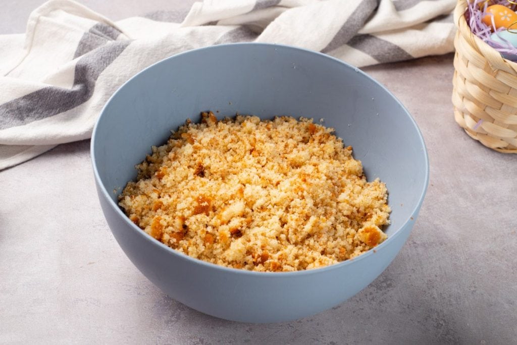 Dort rozdrobte do velké mísy, dokud nezískáte jemné drobky.