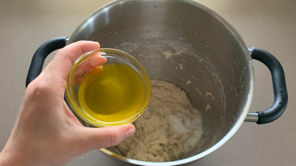 Když je olej zcela absorbován, přikryjte8a necháme kynout 90 minut při pokojové teplotě.