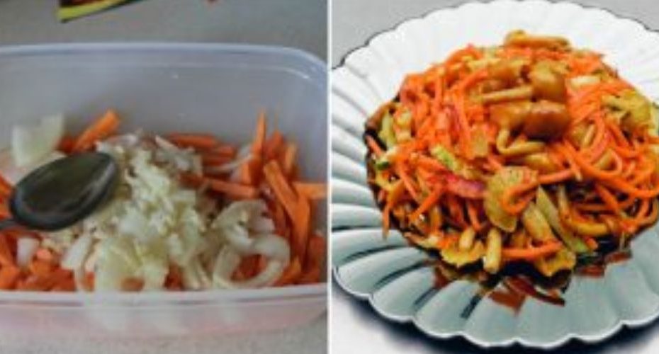 Korejské houby s mrkví a cibulí. Chutné a zajímavé jídlo